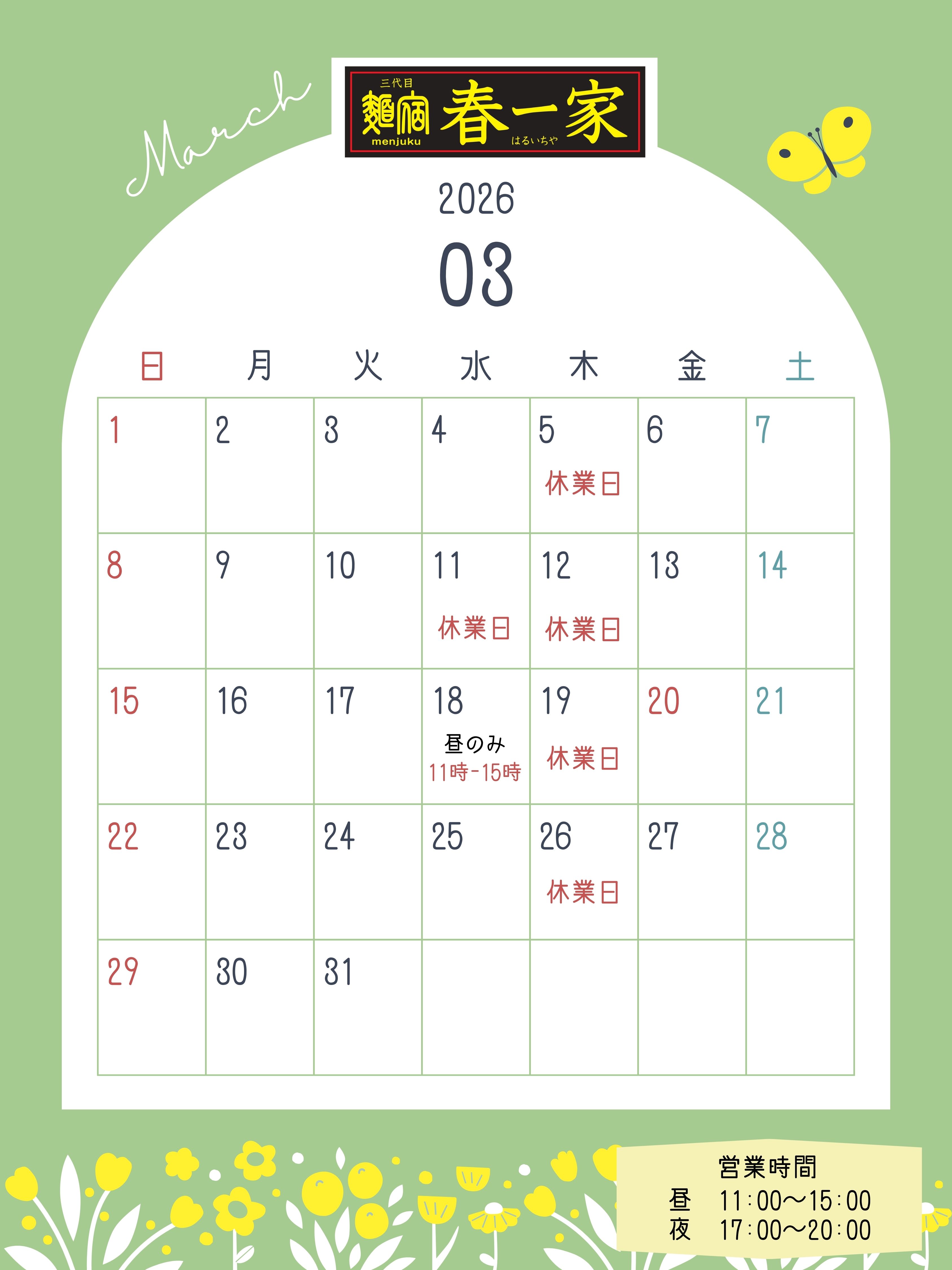 3月のお休み予定    2026-03-01